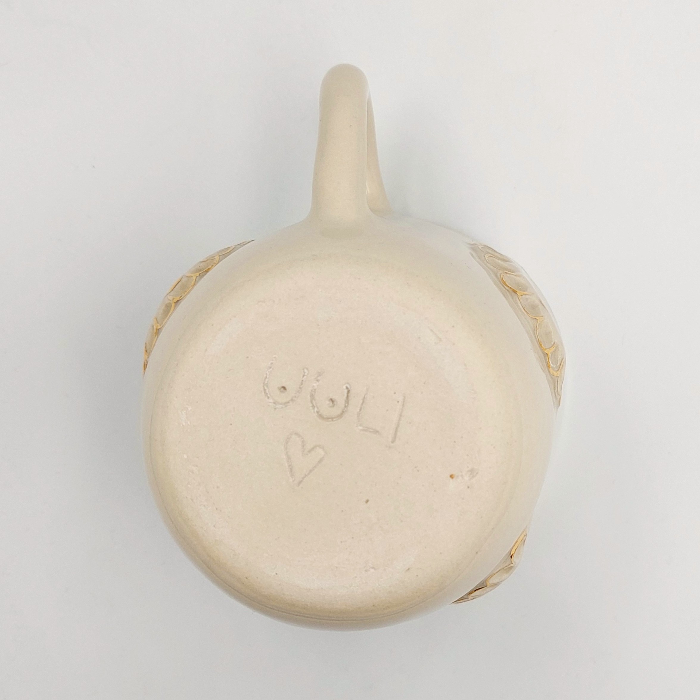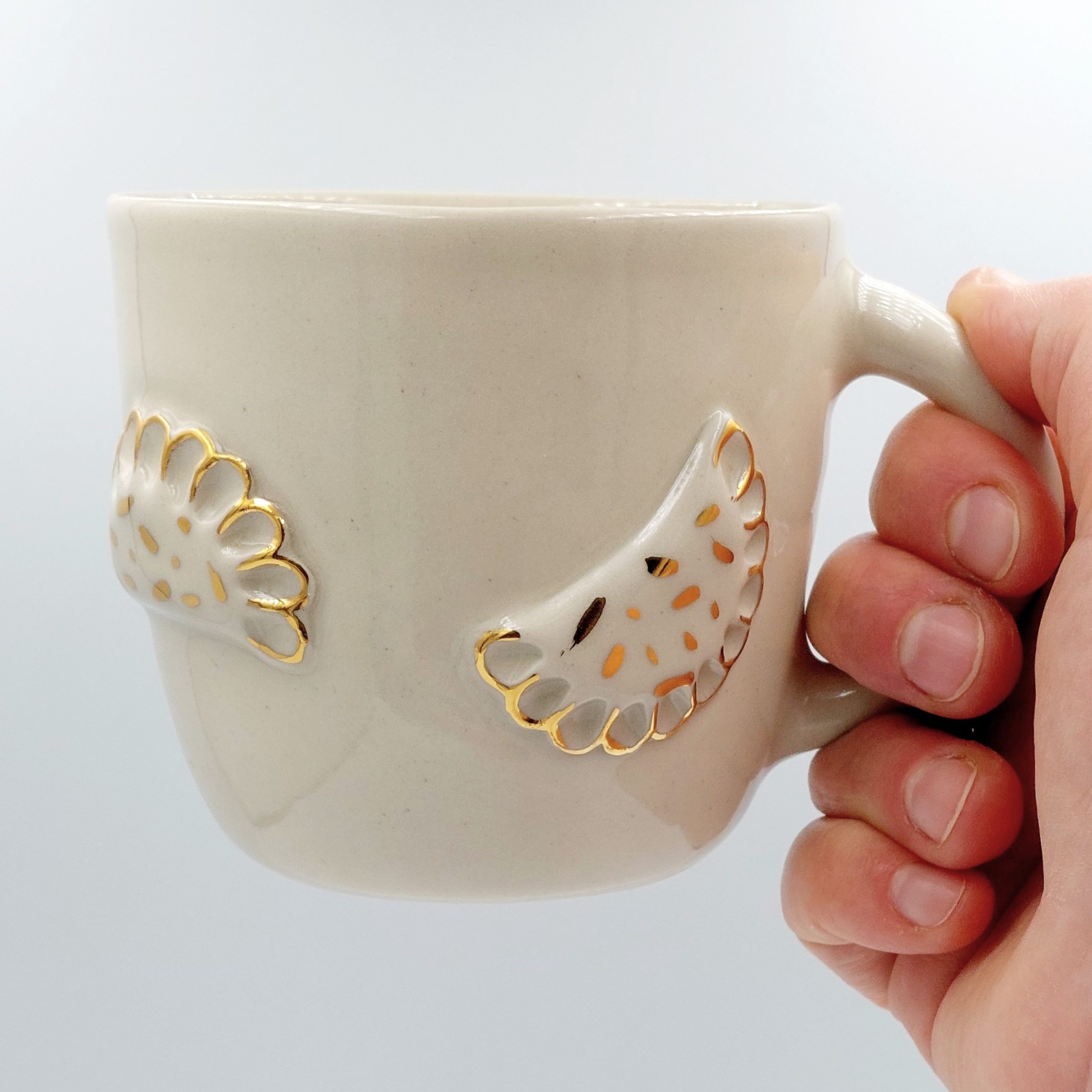 Handmade ceramic mug made in UUli Ceramics and Porcelain Studio, glazed, with a gilded element. Capacity 250 ml. Not dishwasher safe, not microwaveable