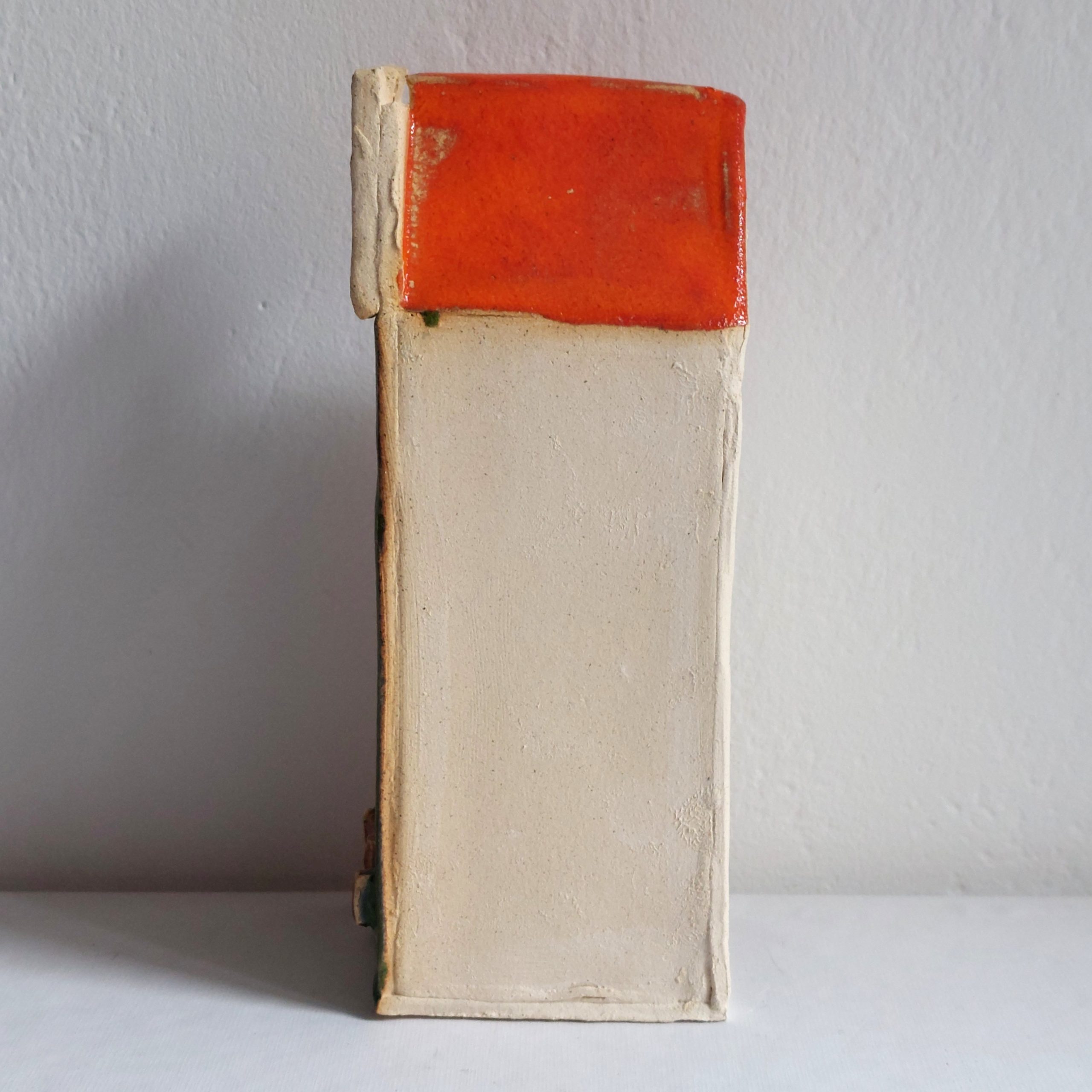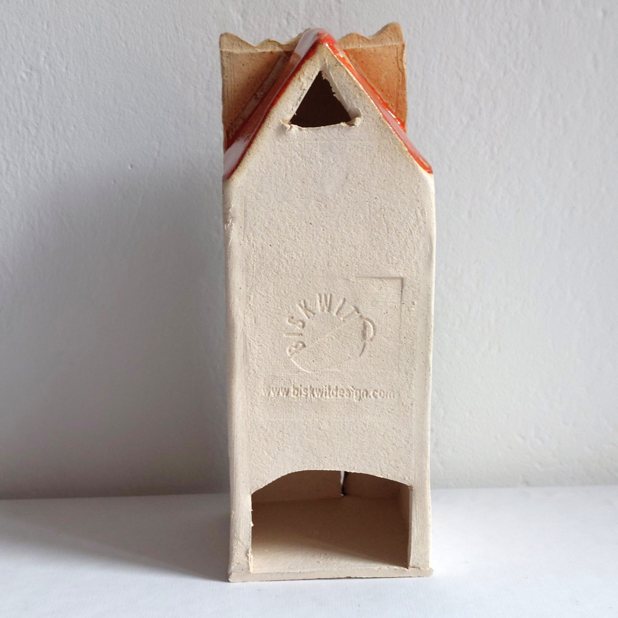ceramic lantern tenement house with a hole for a low tealight candle. Lantern dimensions: height approx. 16 cm, width 6 cm, depth 6 cm.
