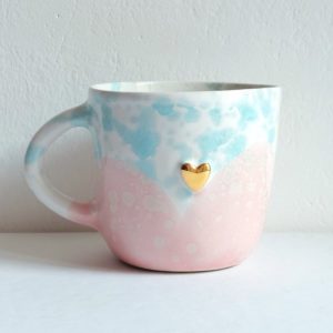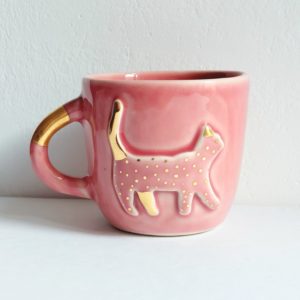 kubek ceramiczny ręcznie malowany z kowalikiem i gałązką miłorzębu
