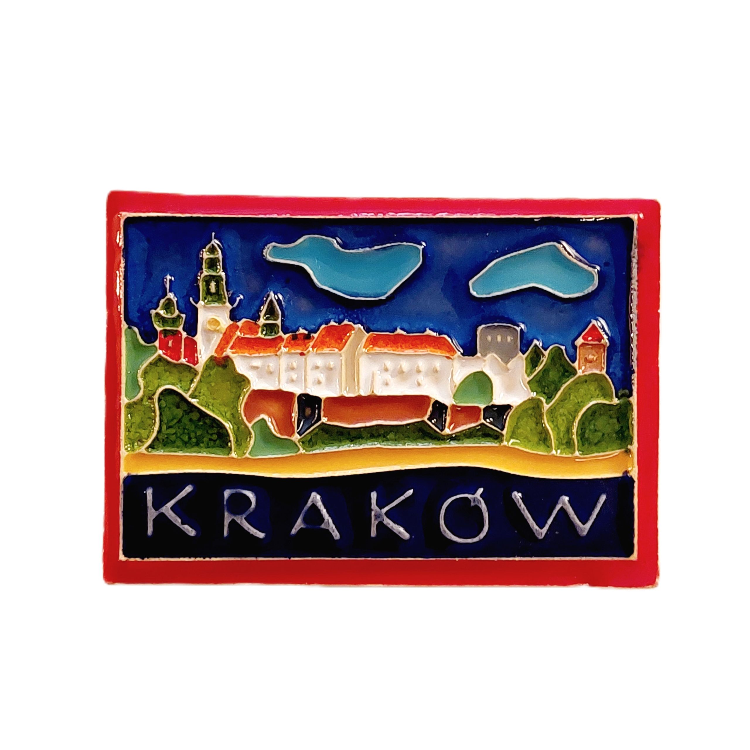 magnes wykonany w lokalnej pracowni ceramiki w Krakowie. Wymiary: wysokość 4,5 cm, szerokość 6,5 cm, grubość 0,5 cm