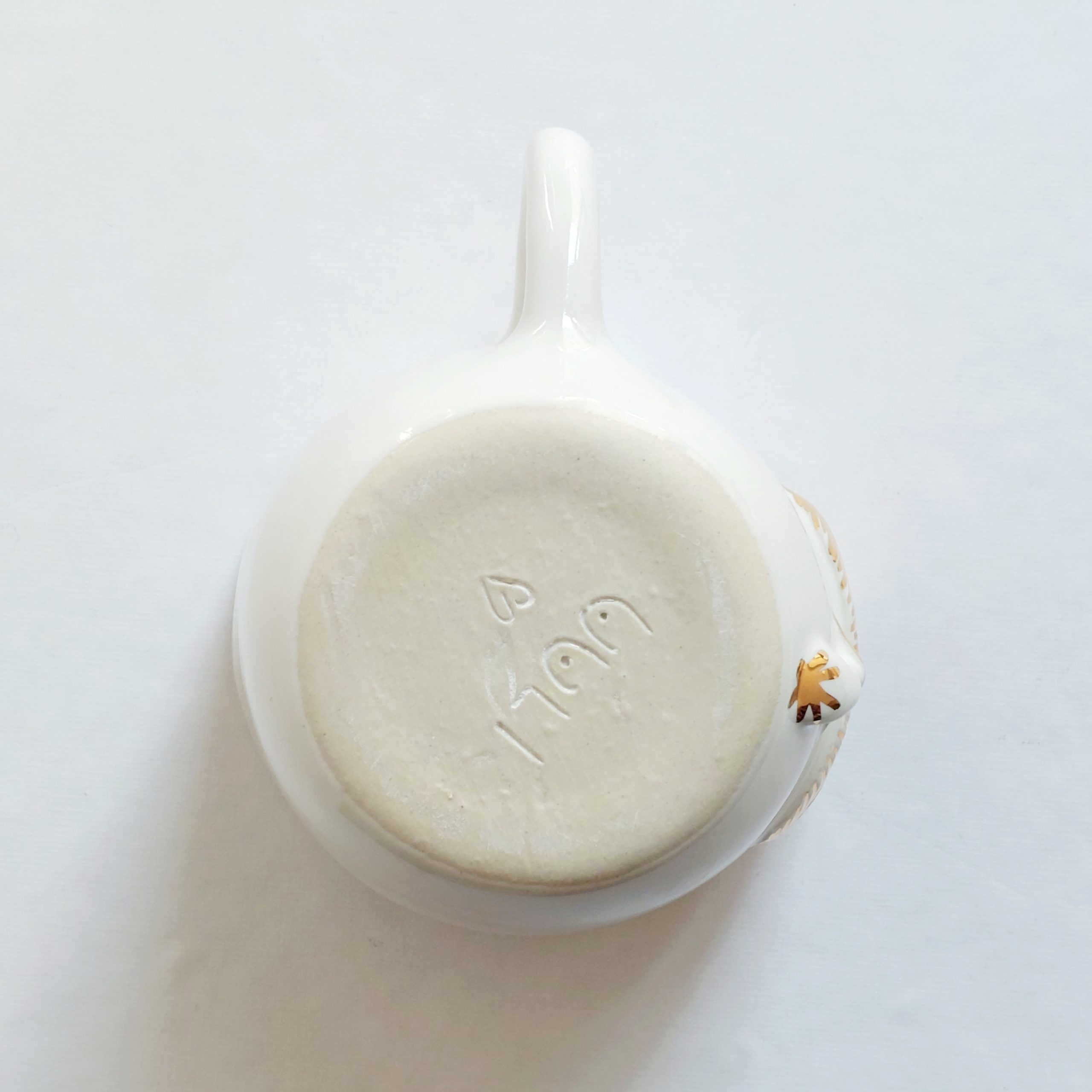 Kubek ceramiczny wykonany ręcznie w pracowni ceramiki i porcelany UUli, szkliwiony, z elementem złoconym. Pojemność 270 ml. Nie nadaje się do mycia w zmywarce, nie nadaje się do używania w kuchence mikrofalowej. Wymiary kubka: wysokość: 9 cm, średnica: 9 cm. Starannie zapakujemy ten kubek do wysyłki w folię bąbelkową i dodatkowe pudełko tekturowe aby dotarł do Ciebie bezpiecznie.