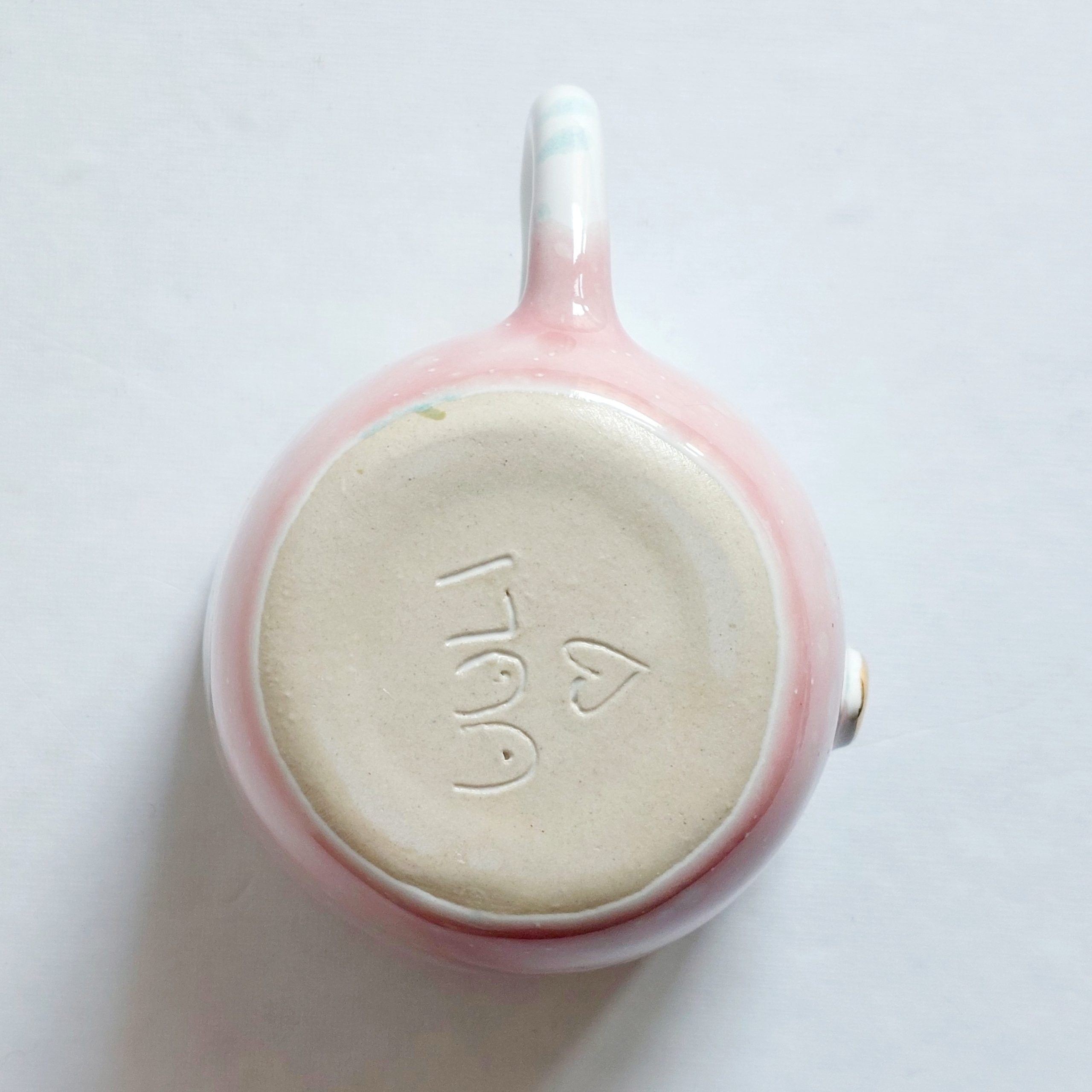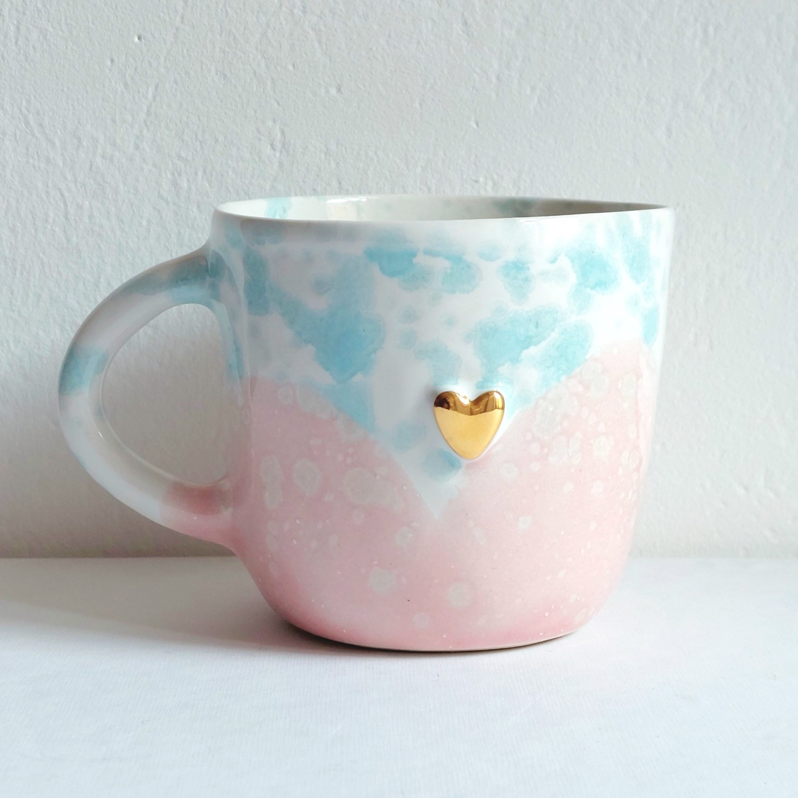 Kubek ceramiczny wykonany ręcznie w pracowni ceramiki i porcelany UUli, szkliwiony, z elementem złoconym. Pojemność 270 ml. Nie nadaje się do mycia w zmywarce, nie nadaje się do używania w kuchence mikrofalowej. Wymiary kubka: wysokość: 9 cm, średnica: 9 cm. Starannie zapakujemy ten kubek do wysyłki w folię bąbelkową i dodatkowe pudełko tekturowe aby dotarł do Ciebie bezpiecznie.