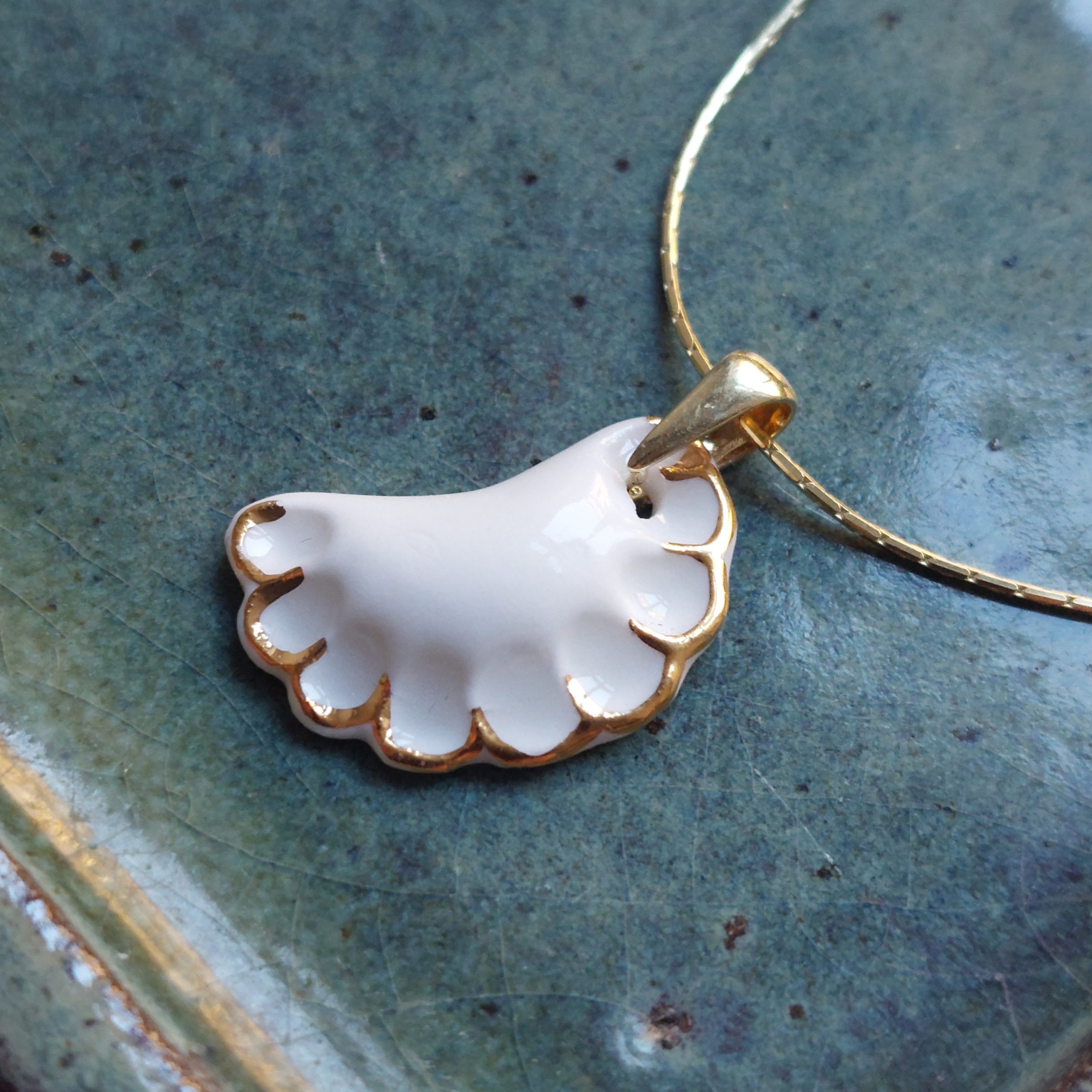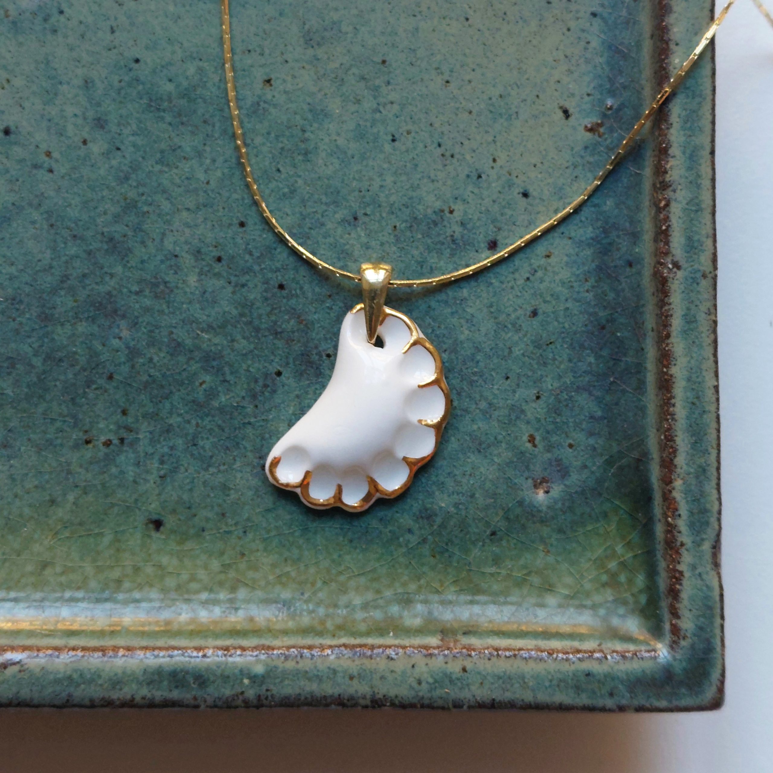 porcelanowy biały pieróg pozłacany na łańcuszku